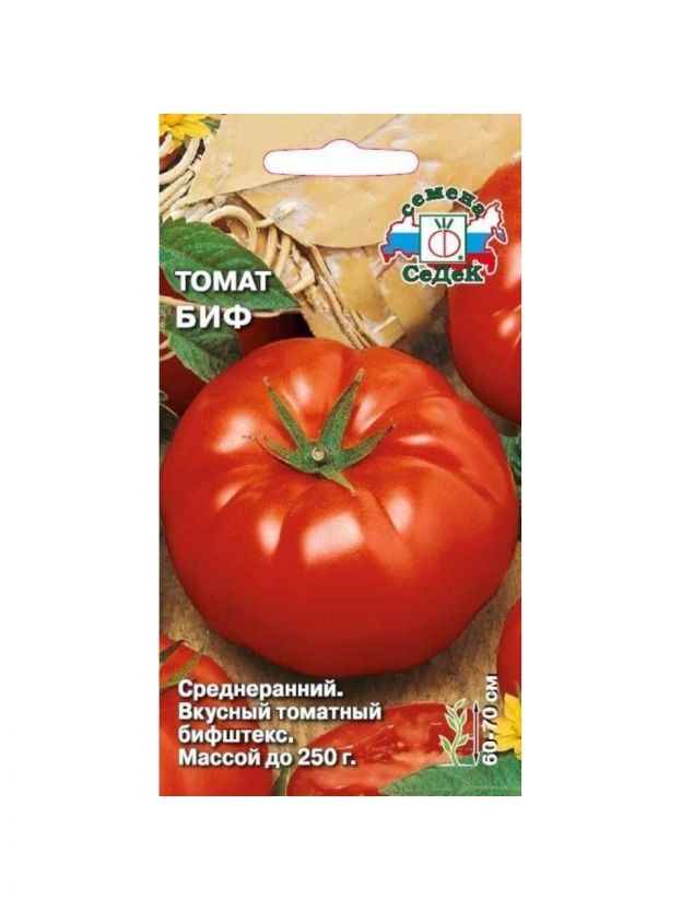 Семена томата Биф, 0.1 г, в цветной упаковке от Седек — идеальный выбор для урожая крупных, мясистых томатов на даче или дома. Гарантия свежести и проверенная всхожесть!