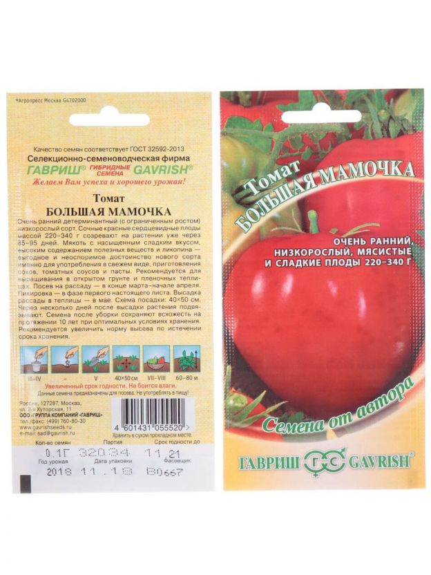 Семена Томат, Большая мамочка, 0.05 г, Семена от автора, цветная упаковка, Гавриш