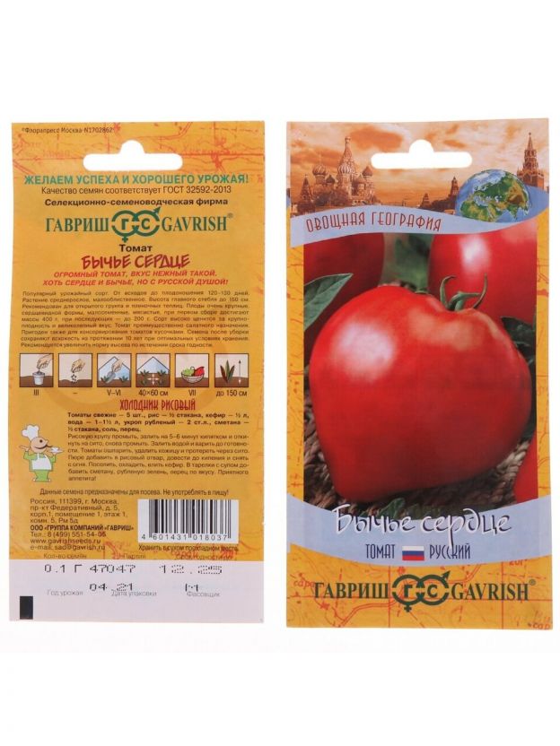 Семена Томат, Бычье Сердце, 0.05 г, География, цветная упаковка, Гавриш