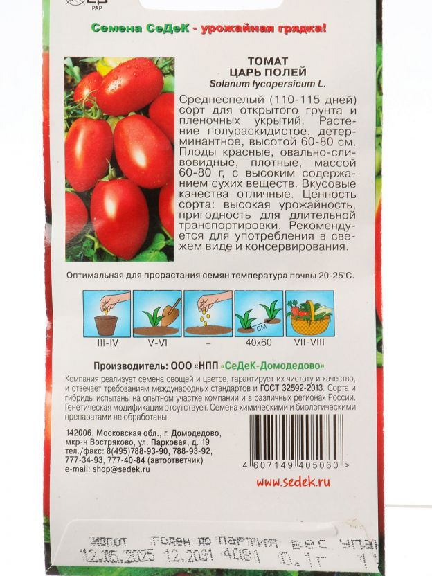 Семена томата Царь полей 0.1 г от Седек — урожайные среднеспелые томаты для дачи и теплицы. Яркая упаковка, стабильный результат, выгодная цена.
