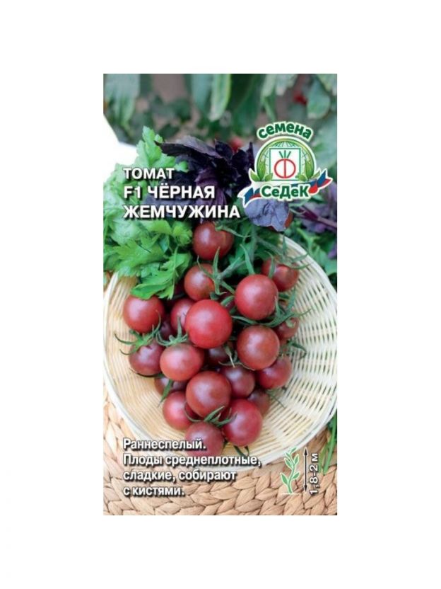 Семена томата Черная жемчужина F1 0.1г — урожайные раннеспелые томаты для дома и дачи. Уникальный вкус, цветная упаковка, российский бренд Седек.