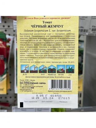 Семена Томат, Черный жемчуг, 0.05 г, цветная упаковка, Гавриш