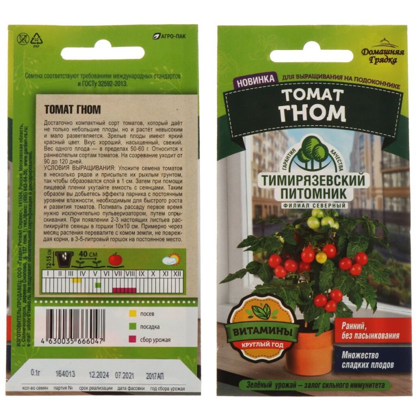 Семена Томат, Гном, 0.1 г, Домашняя грядка, цветная упаковка, Тимирязевский питомник