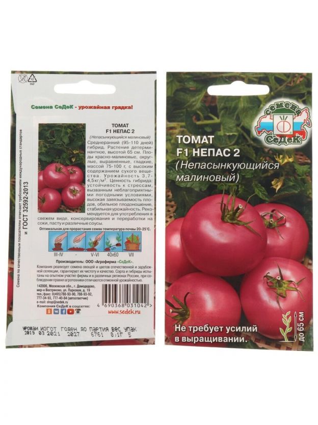 Семена Томат, Непас 2 непасынкующийся малиновый F1, цветная упаковка, Седек