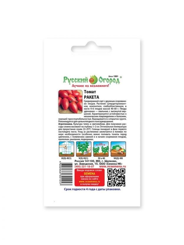Семена Томат, Ракета, 0.3 г, цветная упаковка, Русский огород