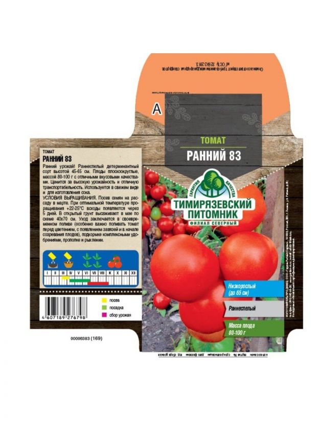 Семена Томат, Ранний-83, 0.3 г, ранний, цветная упаковка, Тимирязевский питомник