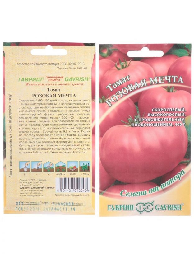 Семена Томат, Розовая мечта, 0.05 г, Семена от автора, цветная упаковка, Гавриш