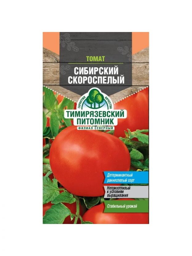 Семена томата Сибирский Скороспелый от Тимирязевского питомника — это проверенный выбор для тех, кто ищет, какой томат лучше посадить на даче или в теплице. Благодаря раннему созреванию, этот сорт отлично подходит для регионов с коротким летом и нестабильной погодой. Семена фасуются в цветную упаковку, что гарантирует сохранность и свежесть до момента посадки.