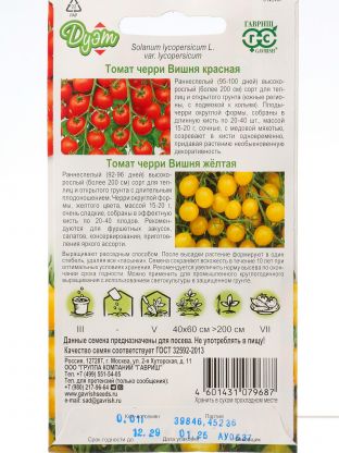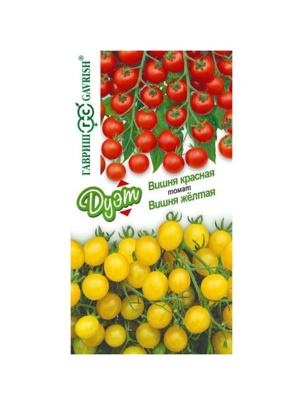 Семена томатов Вишня жёлтая и красная, серия Дуэт Гавриш: яркий урожай для дачи и балкона, раннее созревание, отличный вкус, двойная выгода в одной упаковке.