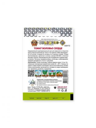 Семена Томат, Воловье сердце, 0.1 г, Кольчуга, цветная упаковка, Русский огород