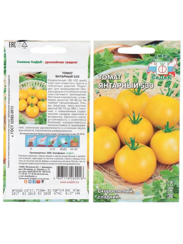 Семена томата Янтарный 530, 0.3 г — быстрый урожай сладких плодов для дачи и дома. Цветная упаковка, оригинал Седек. Идеально для новичков и опытных огородников.