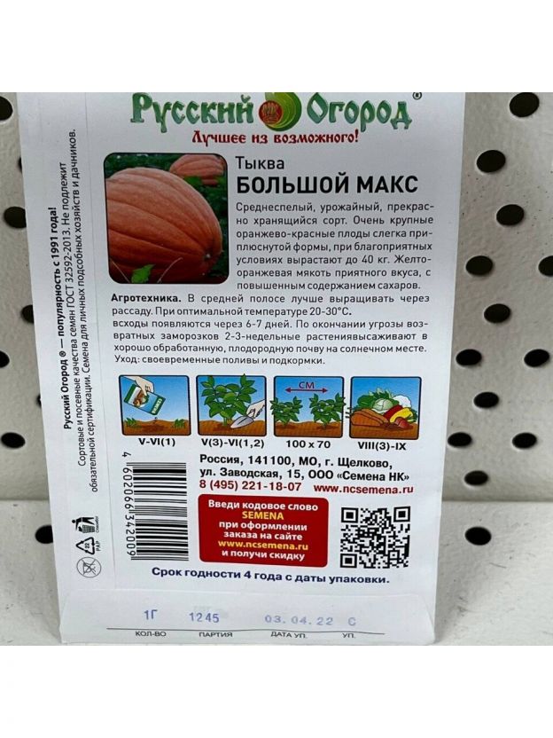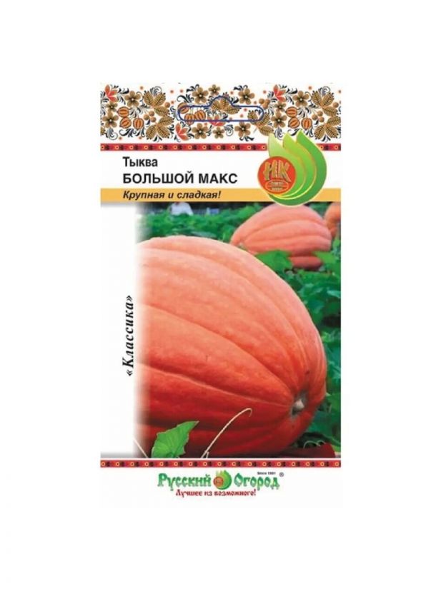 Семена Тыква, Большой Макс, 1 г, цветная упаковка, Русский огород
