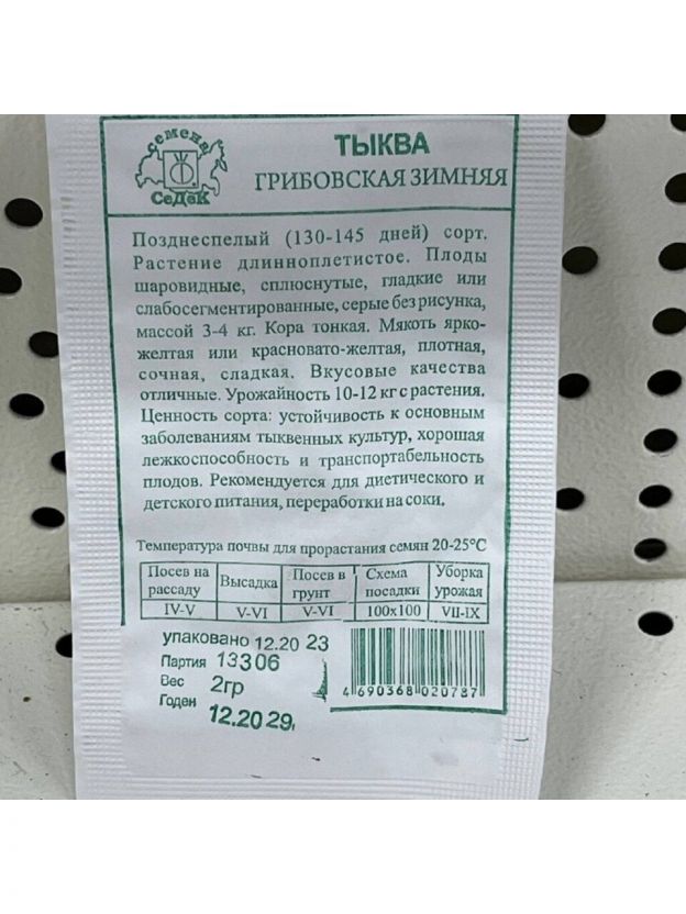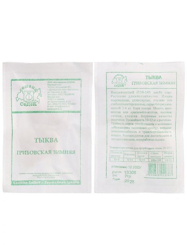 Семена Тыква, Грибовская зимняя, 2 г, белая упаковка, Седек