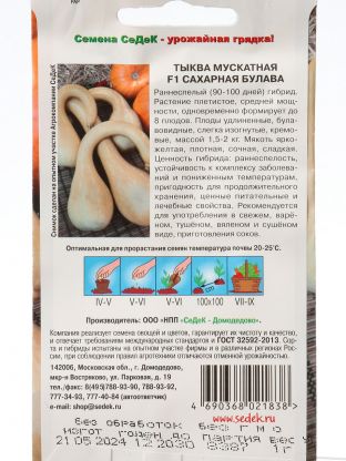 Какой срок созревания у тыквы Сахарная Булава F1?