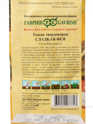 Семена тыквы Сладкая Фея 2 г от Гавриш — отличный выбор для урожая сочных плодов на даче: среднепозднее созревание, авторская селекция, выгодная цена.