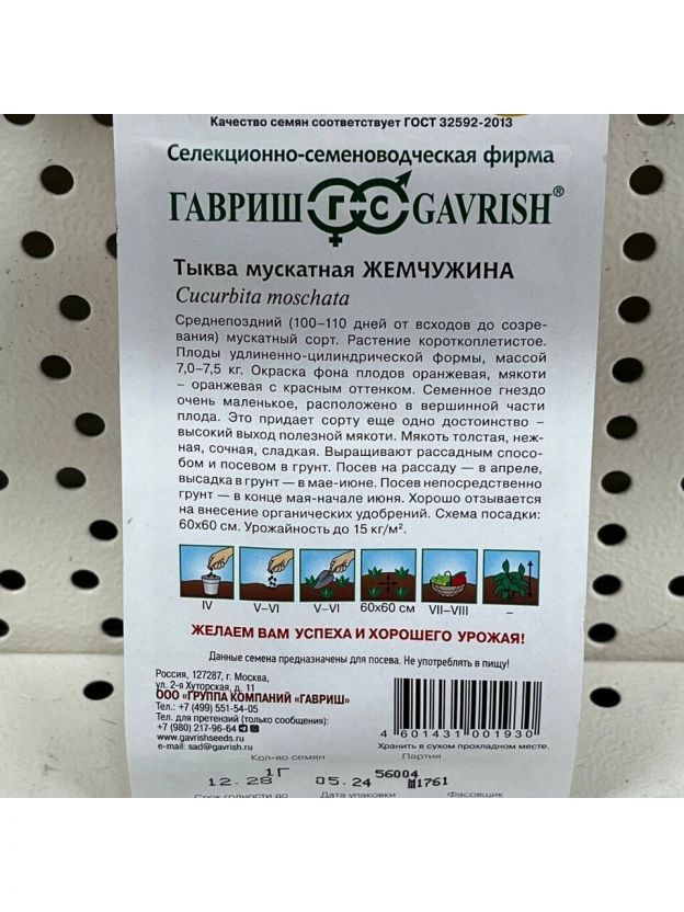Семена Тыква, Жемчужина мускатная, 1 г, цветная упаковка, Гавриш