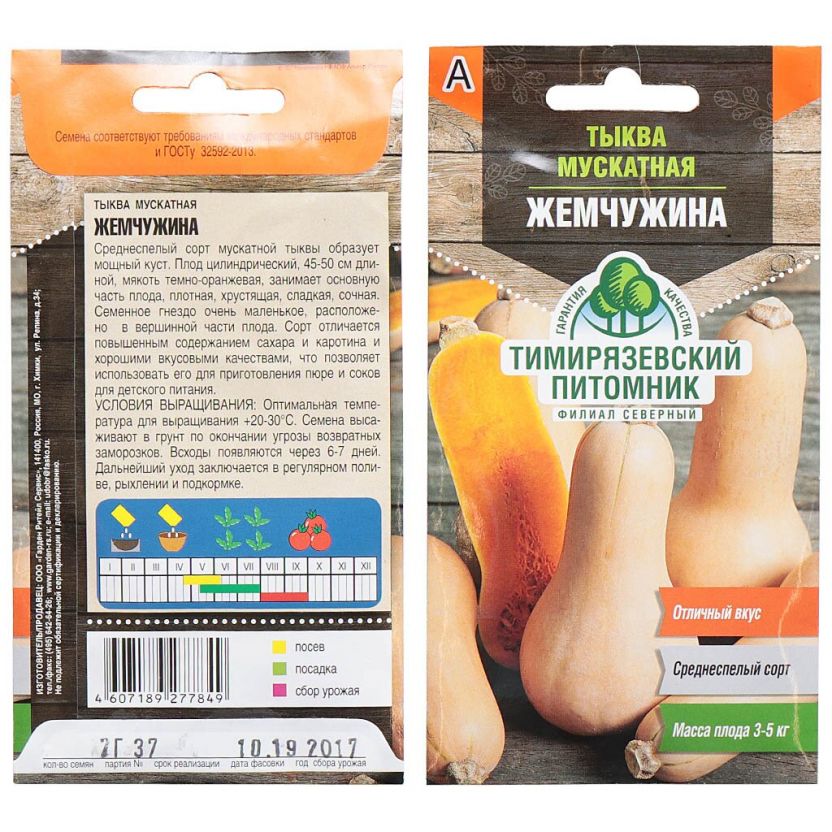 Семена Тыква, Жемчужина мускатная, 2 г, цветная упаковка, Тимирязевский питомник