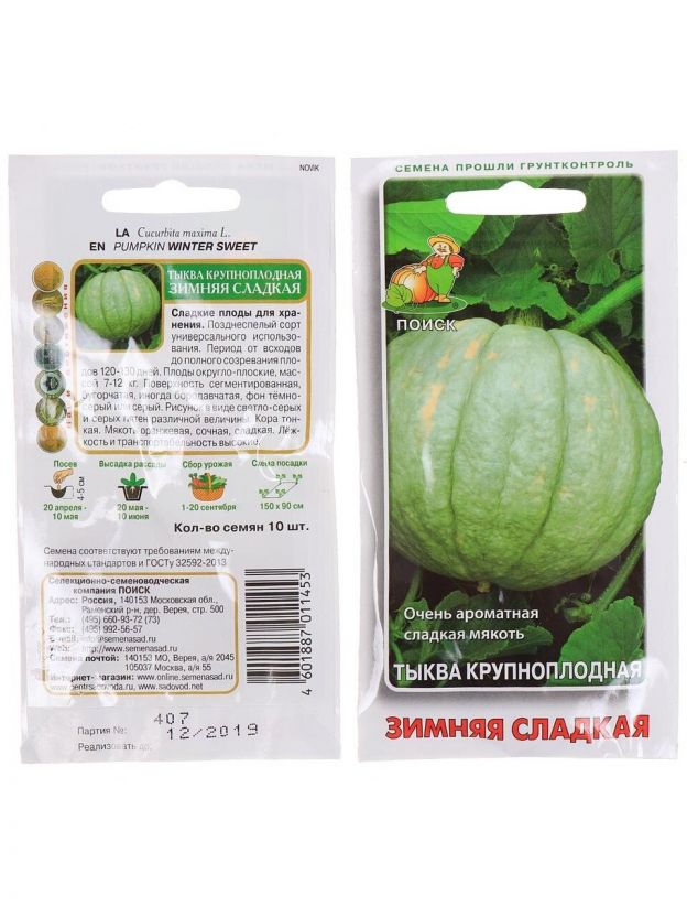 Семена Тыква, Зимняя сладкая, крупноплодная, цветная упаковка, Поиск