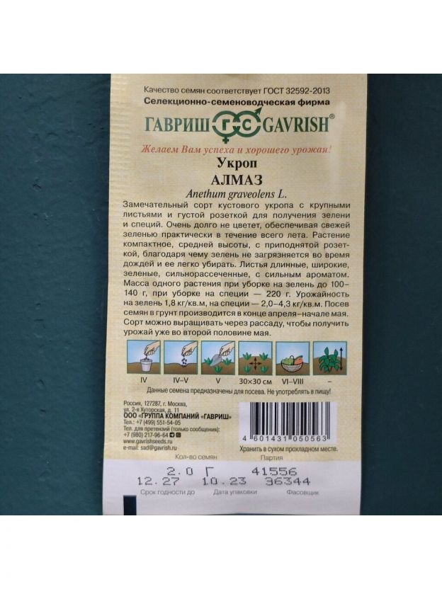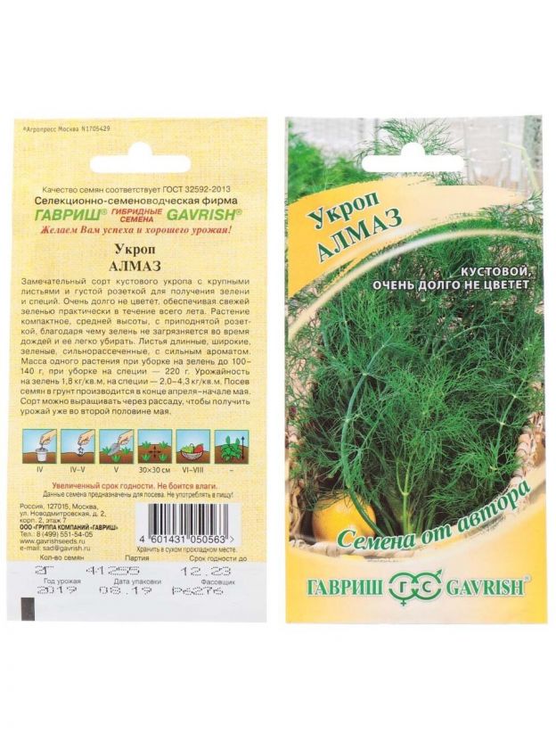 Семена Укроп, Алмаз, 2 г, цветная упаковка, Гавриш