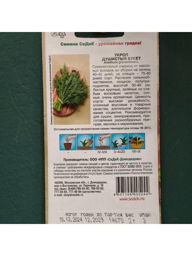 - Упаковка семян: цветная упаковка.