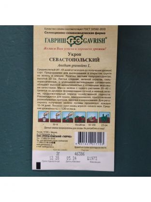 Семена Укроп, Севастопольский, 2 г, Семена от автора, авторские, цветная упаковка, Гавриш