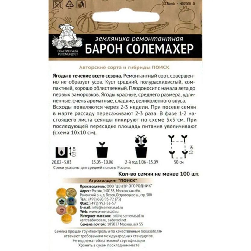 Семена Земляника, Барон Солемахер, ремонтантная, цветная упаковка, Поиск