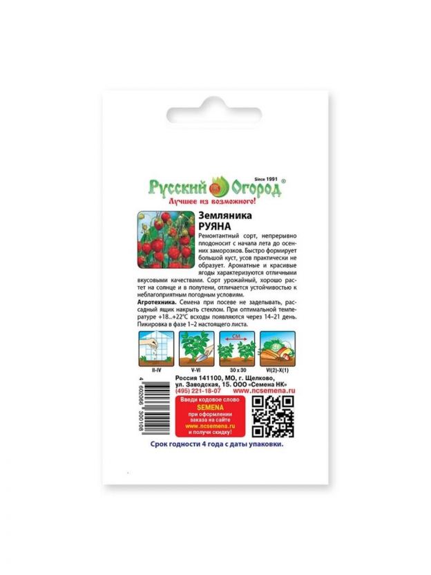 Семена Земляника, Руяна, 0.03 г, цветная упаковка, Русский огород