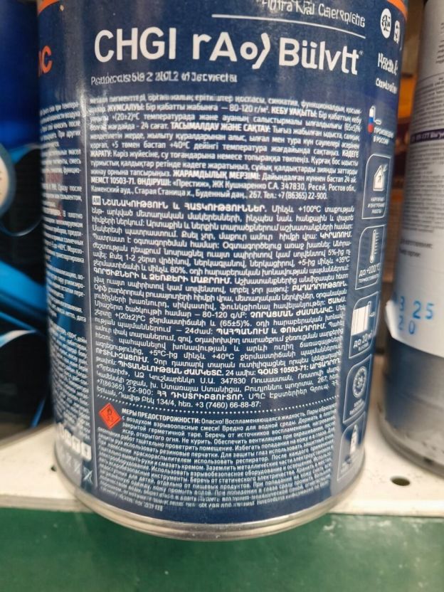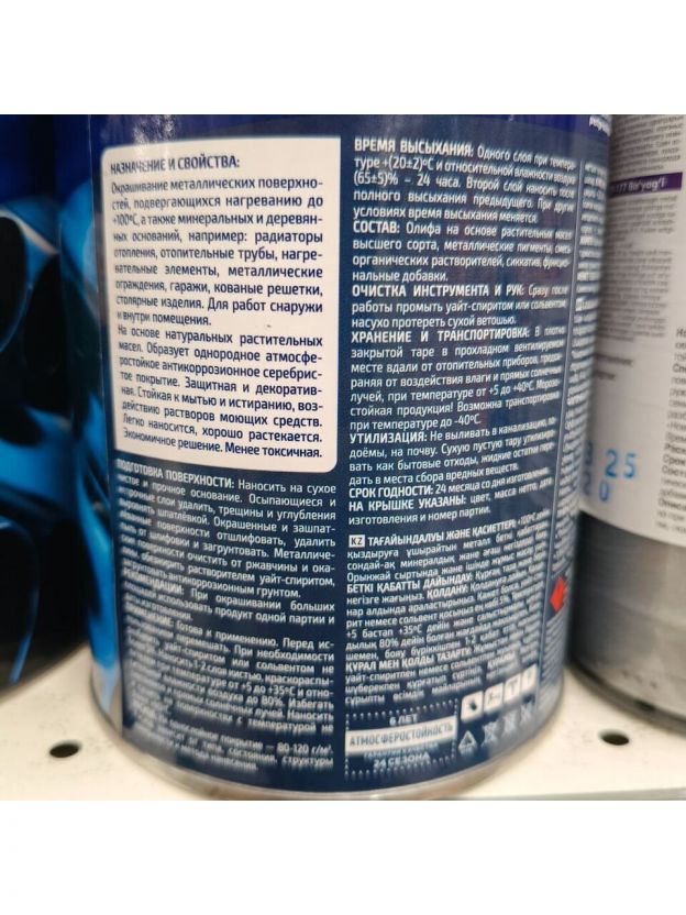 • Время высыхания: Каждого слоя краски при температуре +20°С — 24 часа.