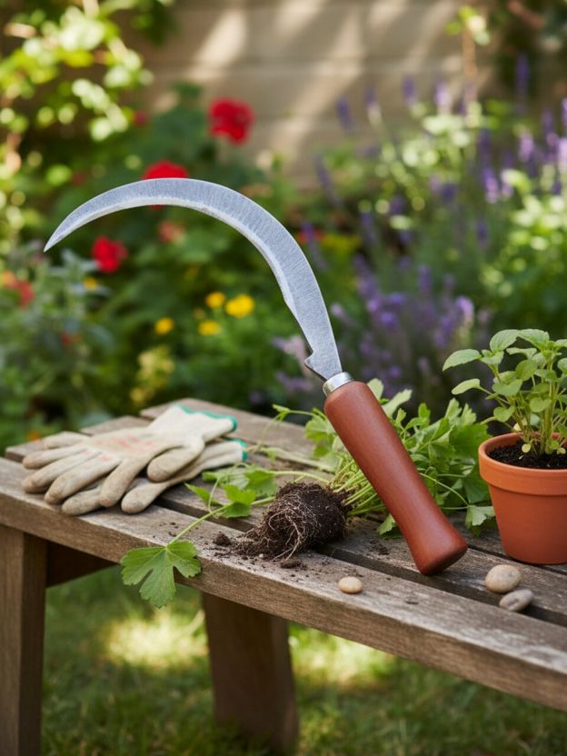 Серп — ручной инструмент для уборки зерновых культур с корня. Эта модель подходит для заготовки корма домашним животным. Величина захвата составляет 17 см.