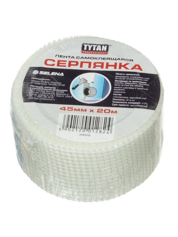Серпянка 45 мм, основа стекловолокно, 20 м, Tytan, Professional, лента самоклеющаяся, 84201
