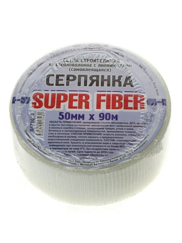 Серпянка 50 мм, основа стекловолокно, 90 м, Superfiber, самоклеющаяся, SFT005A/SF090