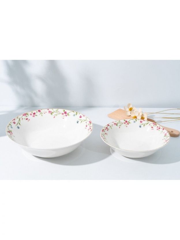 • Практичность: 19 предметов из прочного фарфора — оптимальный набор для 6 персон, тарелки и салатники разных размеров