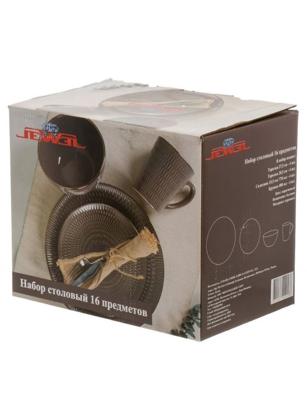 Сервиз столовый керамический на 4 персоны Jewel Амаретто — 16 предметов для стильной сервировки и уютных семейных ужинов. Подходит для посудомоечной машины и СВЧ, идеален для подарка.