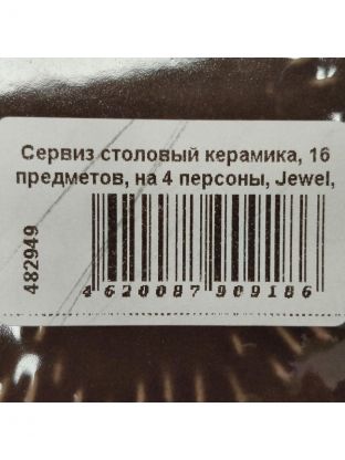 В комплекте 16 предметов — полноценная сервировка на 4 персоны: тарелки, чашки, блюдца. Вес набора — 9,175 кг, материал — керамика.