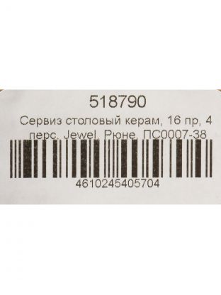 Сервиз столовый керамика, 16 предметов, на 4 персоны, Jewel, Рюне, ПС0007-38