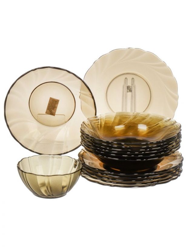 Столовый сервиз из закалённого стекла Alta Marea 62214 на 6 персон: стильная сервировка для дома и дачи, подходит для СВЧ и посудомоечной машины.