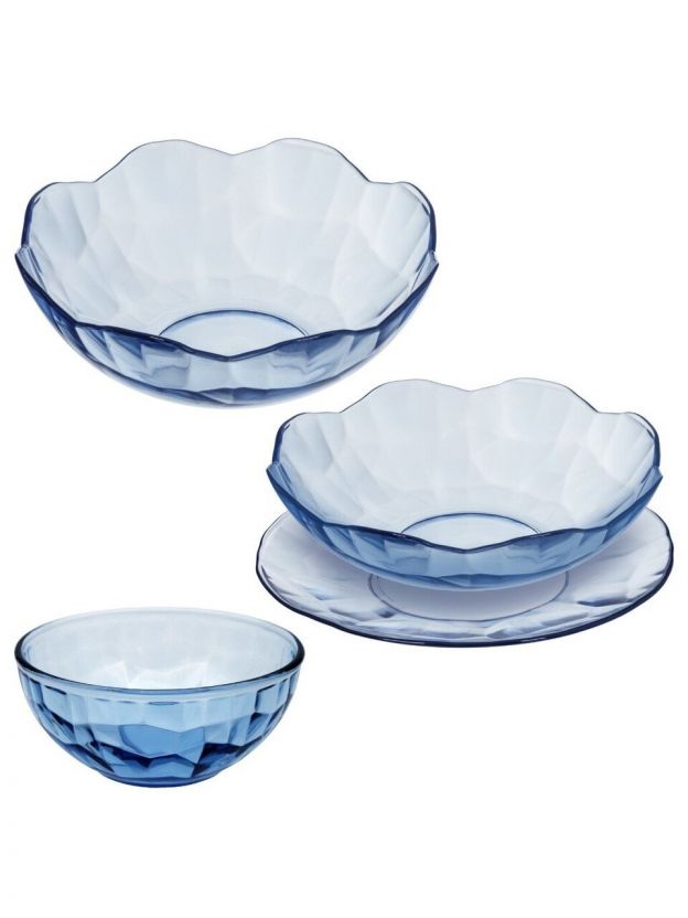 Если вы ищете, какой столовый сервиз выбрать для ежедневного использования или праздничных случаев, обратите внимание на Francy diamond. Голубое стекло с уникальной огранкой не только эстетично, но и устойчиво к царапинам и перепадам температур. Благодаря универсальному составу набора на 6 персон, этот сервиз отлично подойдет как для семейных ужинов, так и для приема гостей на даче или дома.