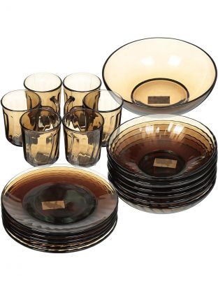 • Оптимальный комплект — 19 предметов на 6 персон, прочное стекло, подходит для СВЧ и посудомоечной машины, вес 6,8 кг