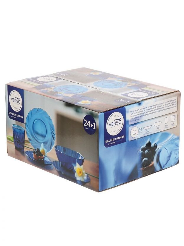 Столовый сервиз Sea brim Saphir на 6 персон — 25 предметов из прочного синего стекла в подарочной упаковке. Эффектное решение для дома и стильного подарка.