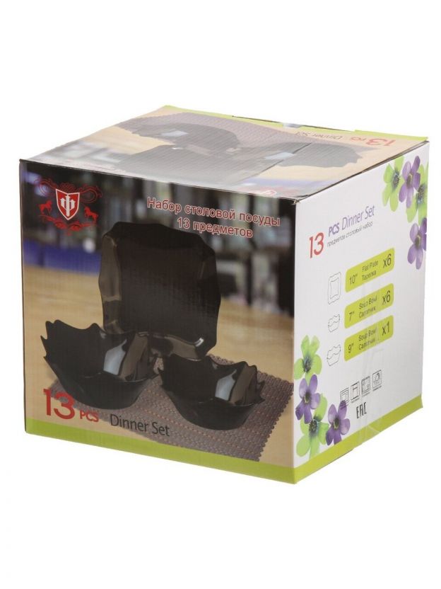 В наборе 13 предметов, рассчитанных на 6 персон — оптимально для семейных обедов и небольших компаний.
