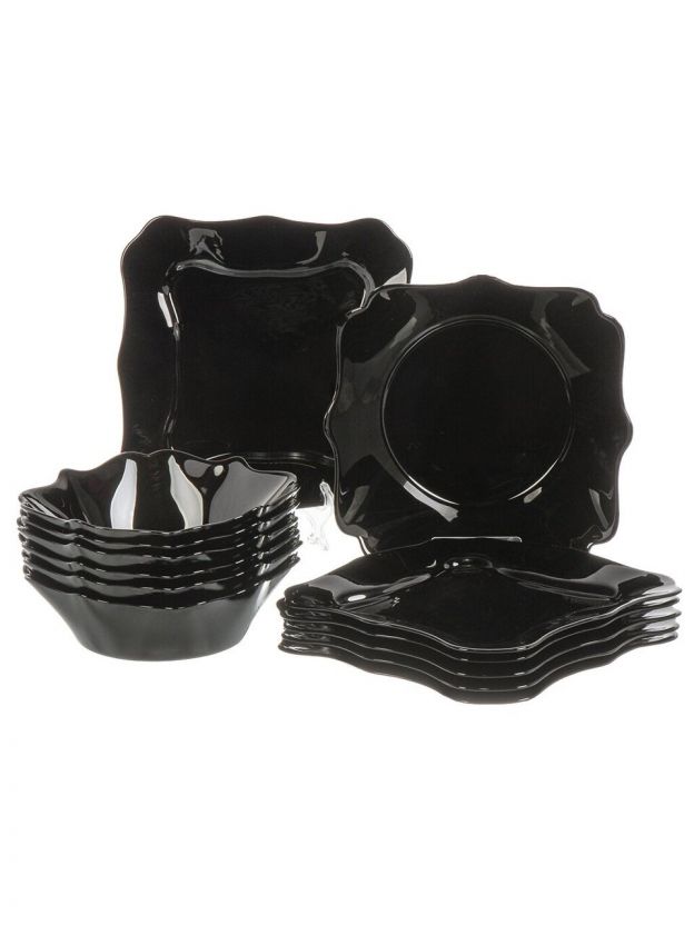 Элегантный столовый сервиз из стеклокерамики на 6 персон: 13 предметов, черный цвет, резной край — идеальный подарок и стиль для вашего дома