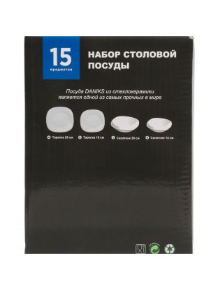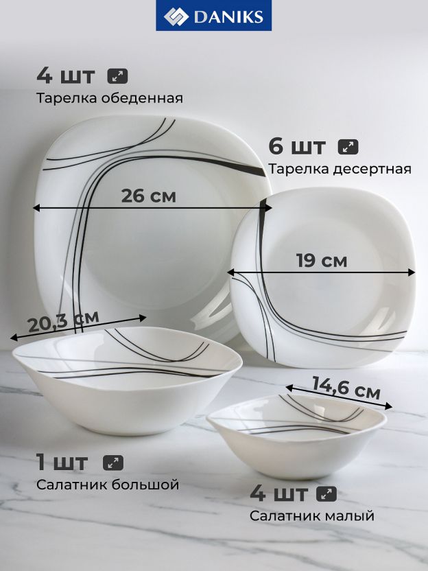 Столовый сервиз Daniks Токио на 4 персоны: 15 предметов из прочной стеклокерамики для стильной сервировки дома или на даче. Подарочная упаковка — идеальный вариант для подарка.