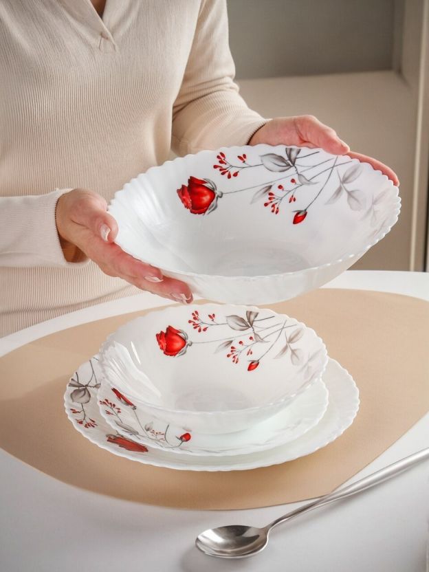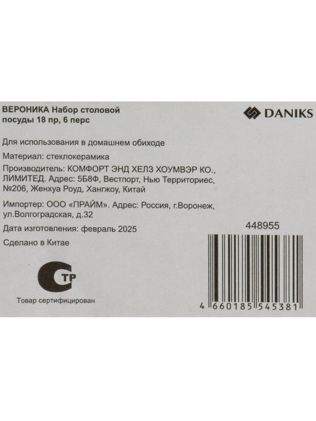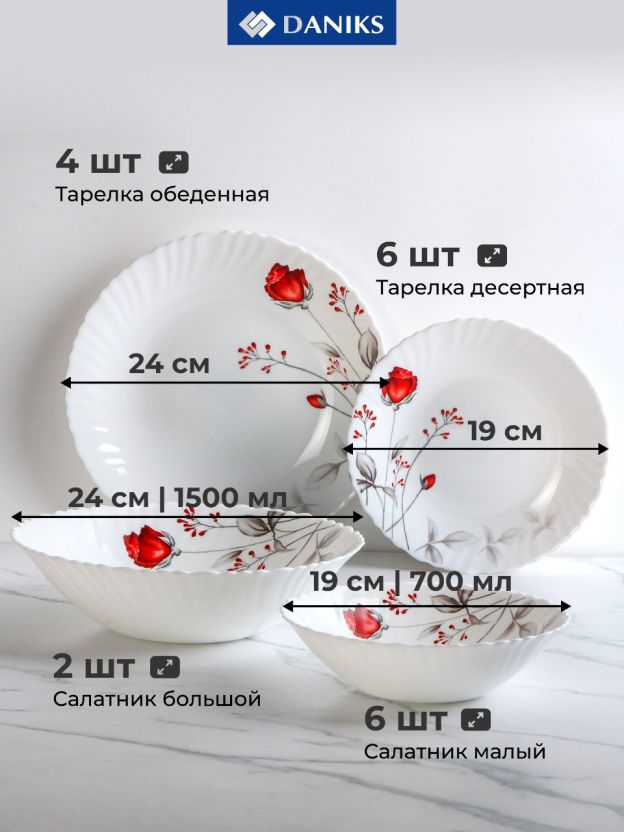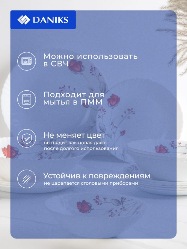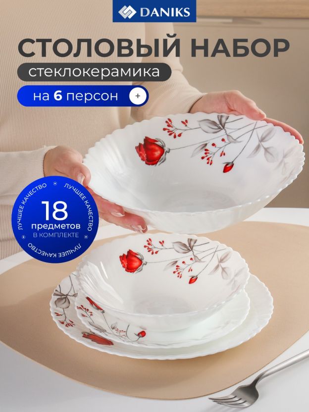 Столовый сервиз Daniks Вероника на 6 персон: 18 предметов из прочной стеклокерамики для стильной сервировки, подходит для посудомоечной машины и СВЧ. Идеален для подарка.