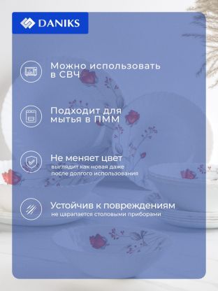 Столовый сервиз из стеклокерамики Daniks Вероника — это современное решение для ежедневного и праздничного стола. Благодаря прочному материалу сервиз устойчив к сколам, легко переносит перепады температур и подходит для использования как дома, так и на даче. Если вы ищете, какой сервиз выбрать для семьи или в подарок, обратите внимание на универсальность: белый цвет и лаконичный дизайн подходят под любой стиль посуды и интерьера.