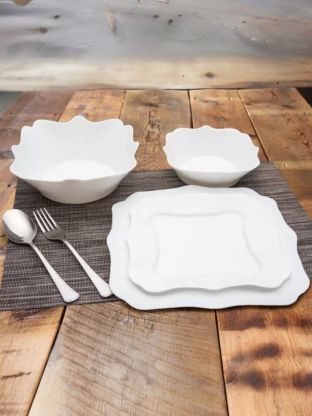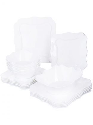 Столовый сервиз из стеклокерамики на 6 персон — 19 предметов с резным краем. Идеальный подарок, современный дизайн, подходит для СВЧ и посудомойки.