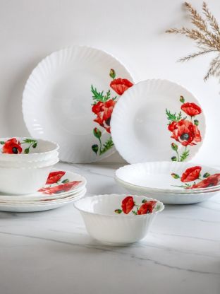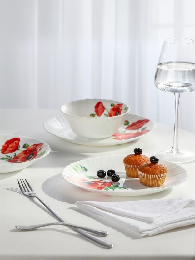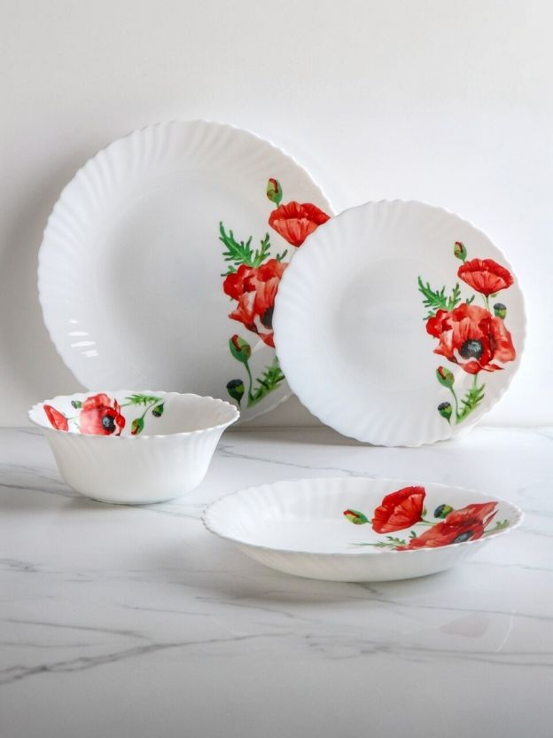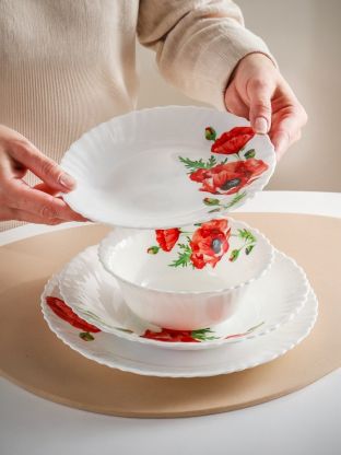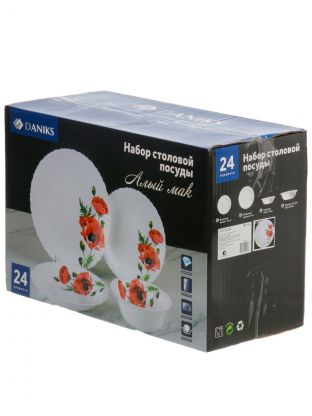 Сервиз столовый стеклокерамика, 24 предмета, на 6 персон, Daniks, Алый мак