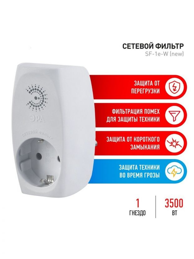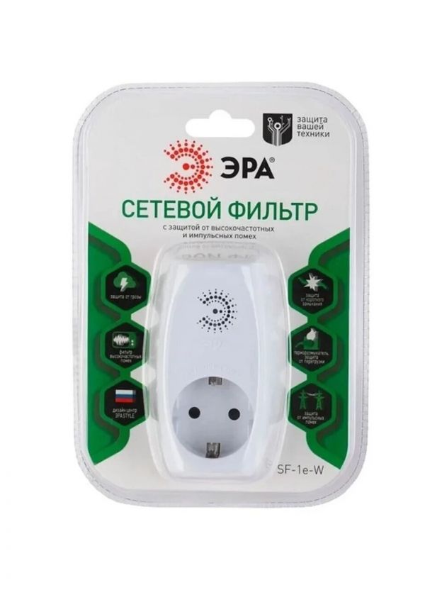 Сетевой фильтр ЭРА SF-1e-W с максимальной защитой необходим на даче, в доме или офисе. Он ориентирован на то, чтобы защитить технику от перепадов напряжения, высокочастотных и импульсных помех, его использование спасет от короткого замыкания.