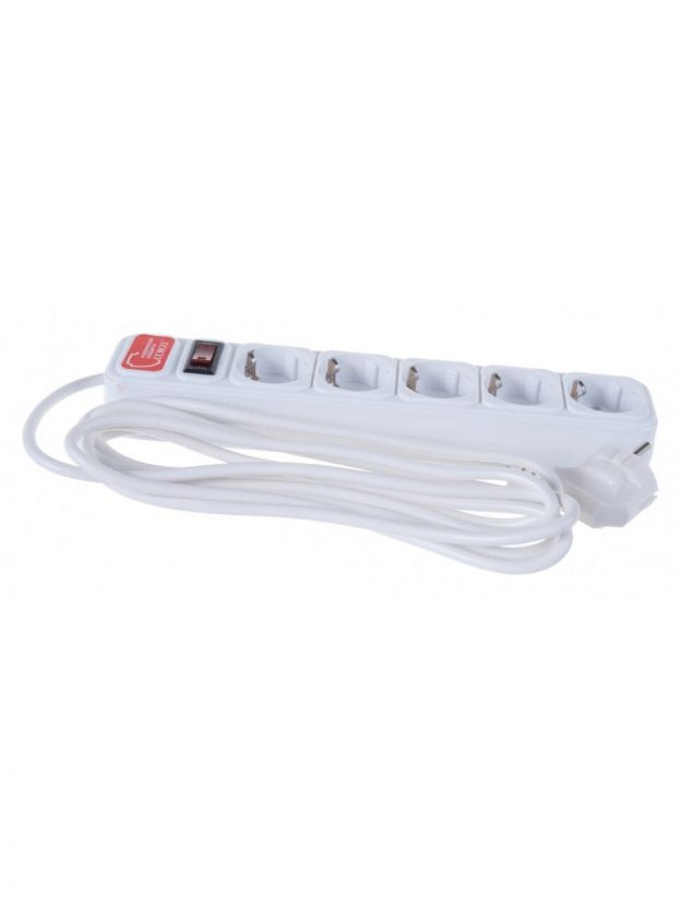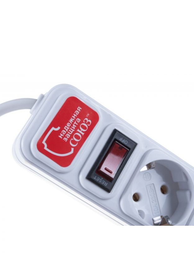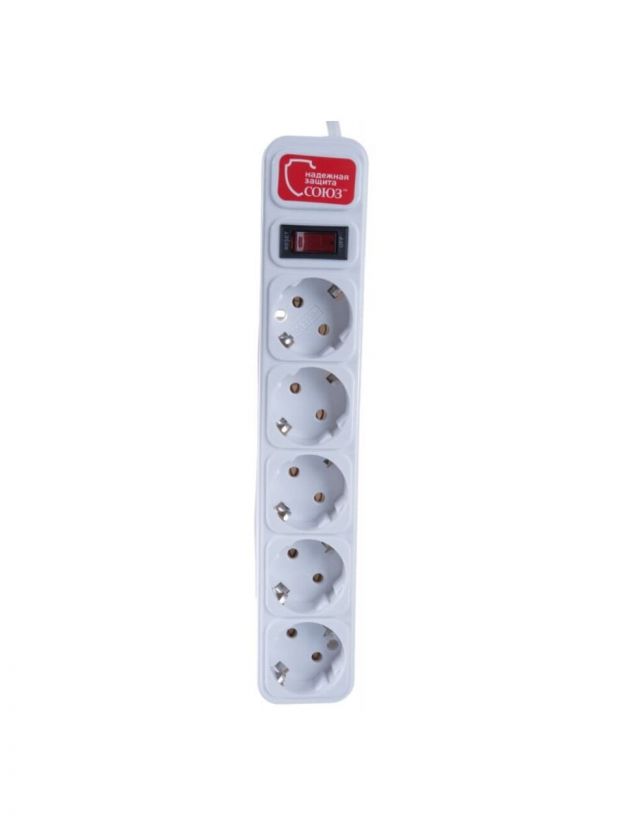 Сетевой фильтр 5 гнезд, 3 м, ПВС, 3х0.75 мм2, с заземлением, выключатель с индикацией, Союз, 1325