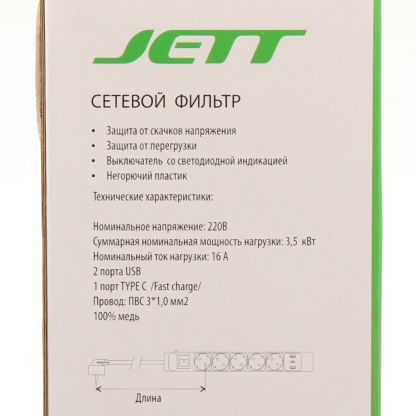Сетевой фильтр Jett 171-605 — оптимальный выбор для тех, кто ценит комфорт, безопасность и технологичность в каждом элементе домашнего пространства. Использование данного сетевого фильтра позволяет не только упростить организацию электропитания, но и повысить уровень защиты подключаемых устройств. Быстрая зарядка через USB и TYPE C делает устройство незаменимым помощником для современных пользователей. Покупка сетевого фильтра Jett — это выгодное решение, обеспечивающее надежность, удобство и экономию времени в повседневной жизни.