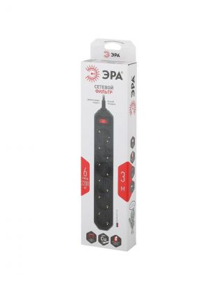 Сетевой фильтр разработан собственными инженерами компании ЭРА, проходят проверку на всех этапах производства, гарантируя высокое качество его исполнения. Длина провода модели составляет 3 метра. Удлинитель удобно использовать в пределах одной комнаты. Сетевой фильтр имеет кольцо на шнуре, благодаря чему прибор можно быстро выдернуть из сети.